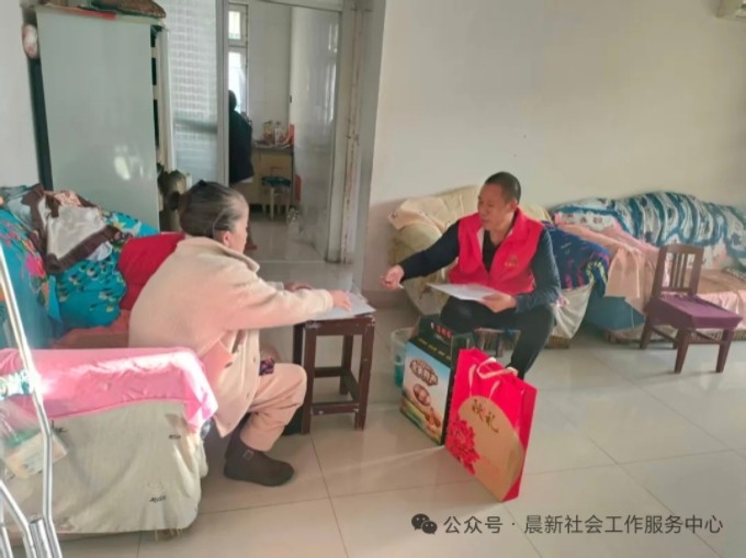 社工与社区领导以及工作人员组成慰问小组,逐一走进服务对象家中,与他们促膝长谈。关切地询问着他们的身体状况、生活需求与实际困难,倾听他们的心声与期盼。同时,为他们送上精心准备的月饼、鸡蛋等节日慰问品,每一份慰问品都承载着沉甸甸的关爱,每一句叮嘱都传递着家人般的温暖。