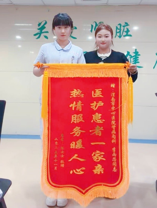 数智中国陕西渭南电(副总编:张家南   张思彤)近日,有患者家属给渭南市中心医院肾病内科的护士李雨芯同志送去了一枚锦旗,据了解,该患者在渭南市中心医院肾病内科住院20余天,责任护士是李雨芯。