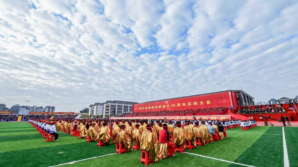 据了解,都安70周年县庆期间还举办了系列特色活动:中央民族歌舞团带来高水平慰问演出,供销大集汇聚瑶山特色好物,成就展、书画摄影展全面展现发展成果,非遗展演、山歌擂台赛让民族文化活力绽放,全县上下沉浸在喜庆祥和的氛围中。